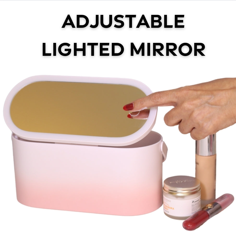 Illuminate your beauty routine with the Pink Flamingo Makeup Box. Featuring an adjustable LED-lit mirror, this makeup box provides optimal lighting for flawless application.